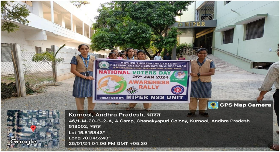 The National Service Scheme (NSS) at Mother Theresa Institute of Pharmaceutical Education and Research (MIPER) is a student-centered extension program aimed at developing the personality of students through community service.